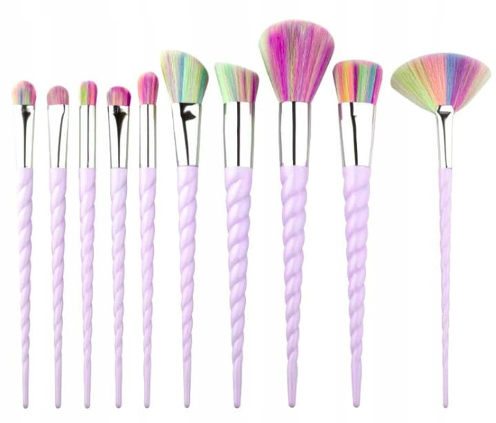 ZESTAW 10 PROFESJONALNYCH PĘDZLI DO MAKIJAŻU BRYLANTOWE - MUSZLOWE