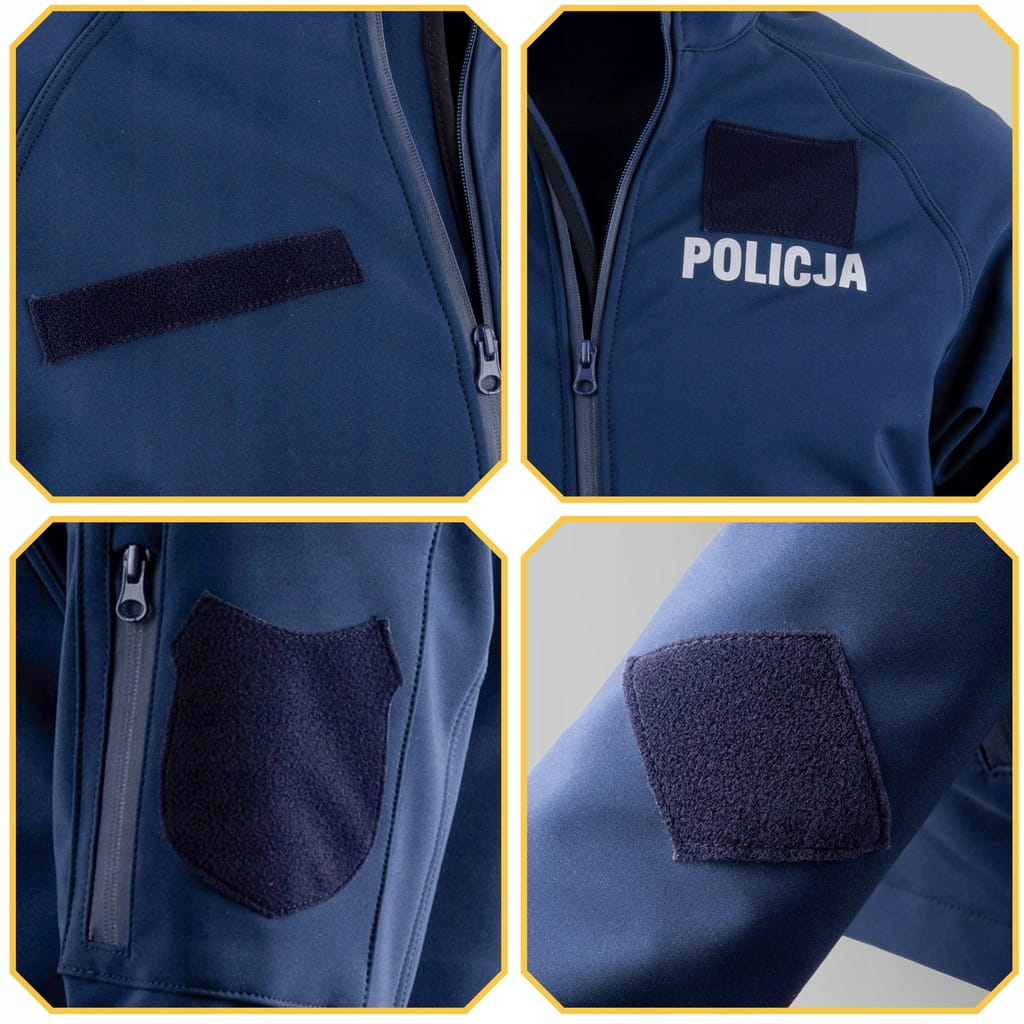 Softshell Policja Kurtka Ochronna Wodoodporna z Rzepami i Zamkami XS