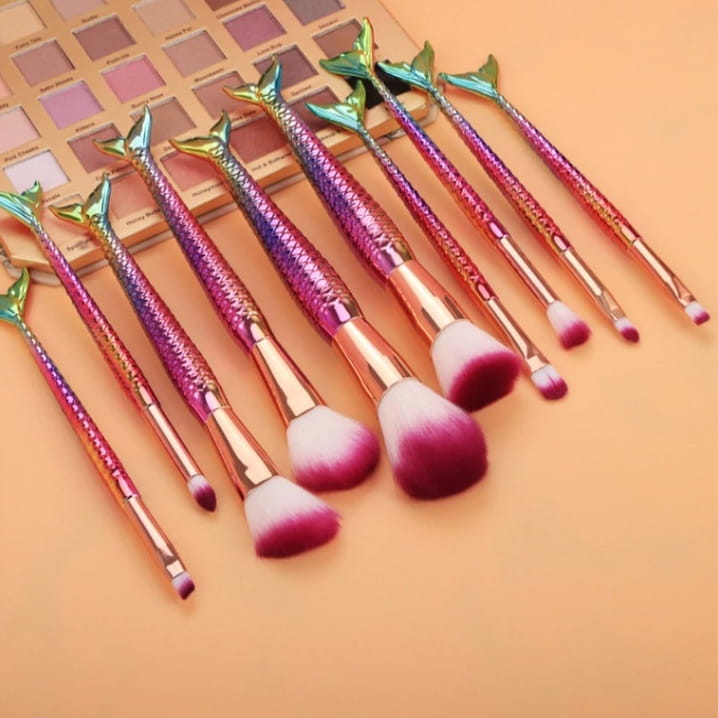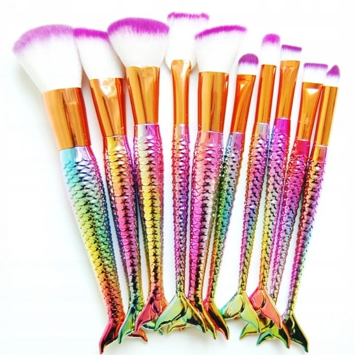 ZESTAW PĘDZLI DO MAKIJAŻU SYRENKA 10SZT KOLOR